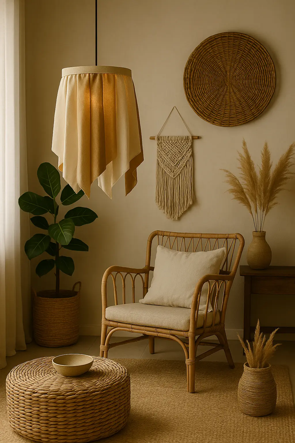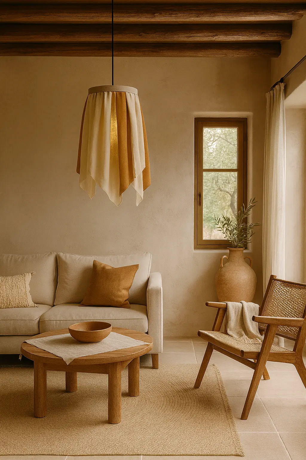 Samen vormen ze een luchtig, gelaagd design dat het licht op een warme, natuurlijke manier filtert.